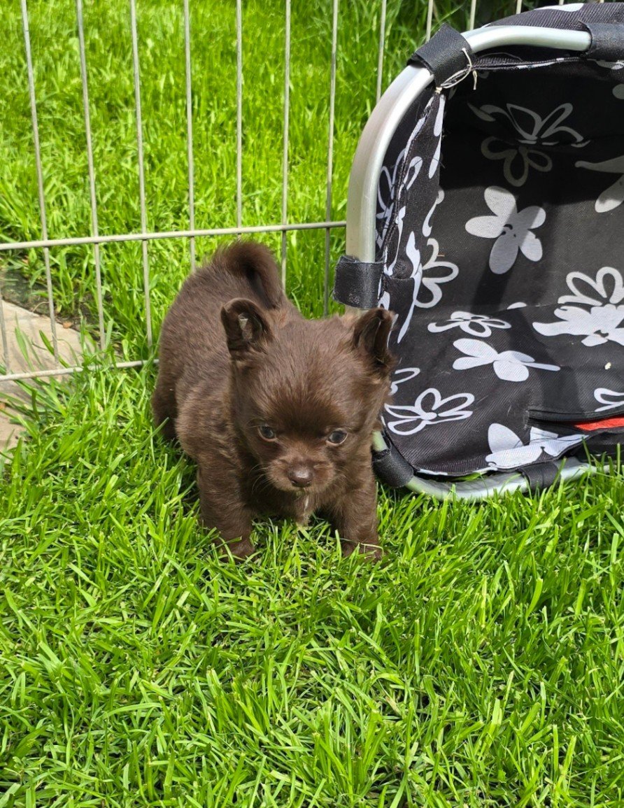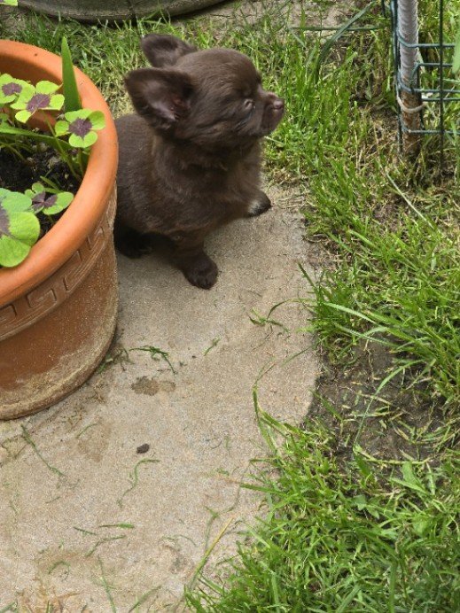 čivava dlouhosrstá s PP fenka tmavěčokoládové barvy ihned k odběru